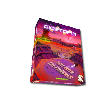 Roll with the Punches est une extension pour Dicetopia qui apporte une toute nouvelle couche de contrôle au jeu avec des dés Magmacorium immuables, des jetons de protection et une manipulation de l’ordre des tours ! Il ajoute également un nouveau plateau de terrain vague avec trois nouveaux emplacements, la possibilité de jouer à 5 joueurs, des objectifs de tour court, ainsi que plus de factions, de missions et de scénarios !